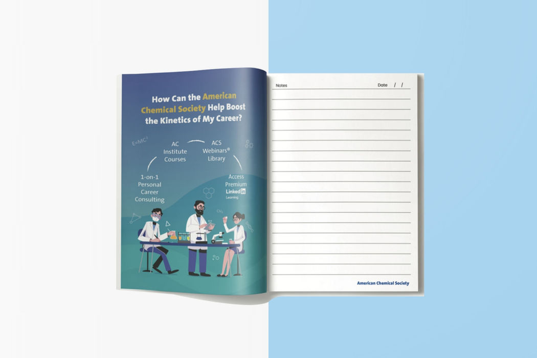 To elevate the American Chemical Society's (ACS) student chapter microsite, we crafted a design that embodied global appeal while resonating with its primary audience—students. The hero image, an illustration-based concept, seamlessly integrated the periodic table, DNA structures, and lab equipment, symbolizing the essence of ACS. We also envisioned a functional yet impactful journal. Divider pages within the journal highlighted ACS’s four unique offerings, creating a cohesive narrative around its purpose.