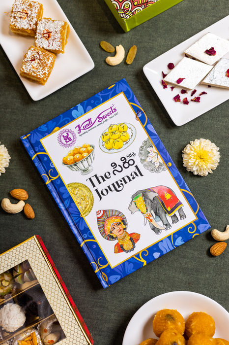 We realised that a traditional brochure couldn’t capture Kanti Sweets remarkable legacy. We envisioned creating lasting brand assets. Enter ‘The Sihi Journal,’ a unique blend of tradition and modernity. Some watercolour illustrations were incorporated to infuse the design with a traditional aesthetic, while maintaining a contemporary touch. We began with Kanti Sweets’ humble beginnings and transformed the journal into iconic symbols of Karnataka, such as a Kathakali dancer and a decorated elephant, deeply connecting the brand with its roots. However, it needed a personal connection. So, we added a nostalgic excitement, turning the journal into an interactive experience that goes beyond mere storytelling.